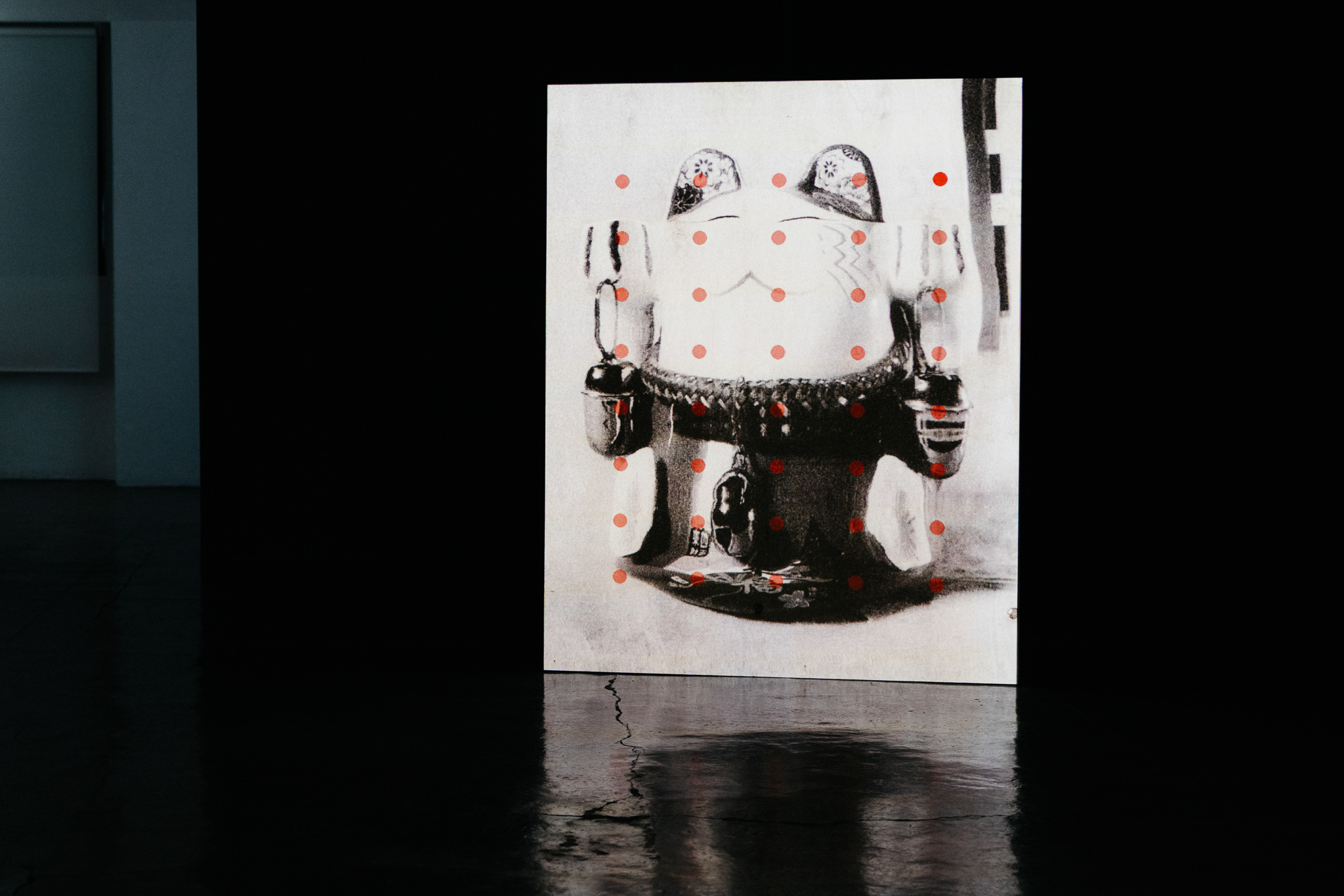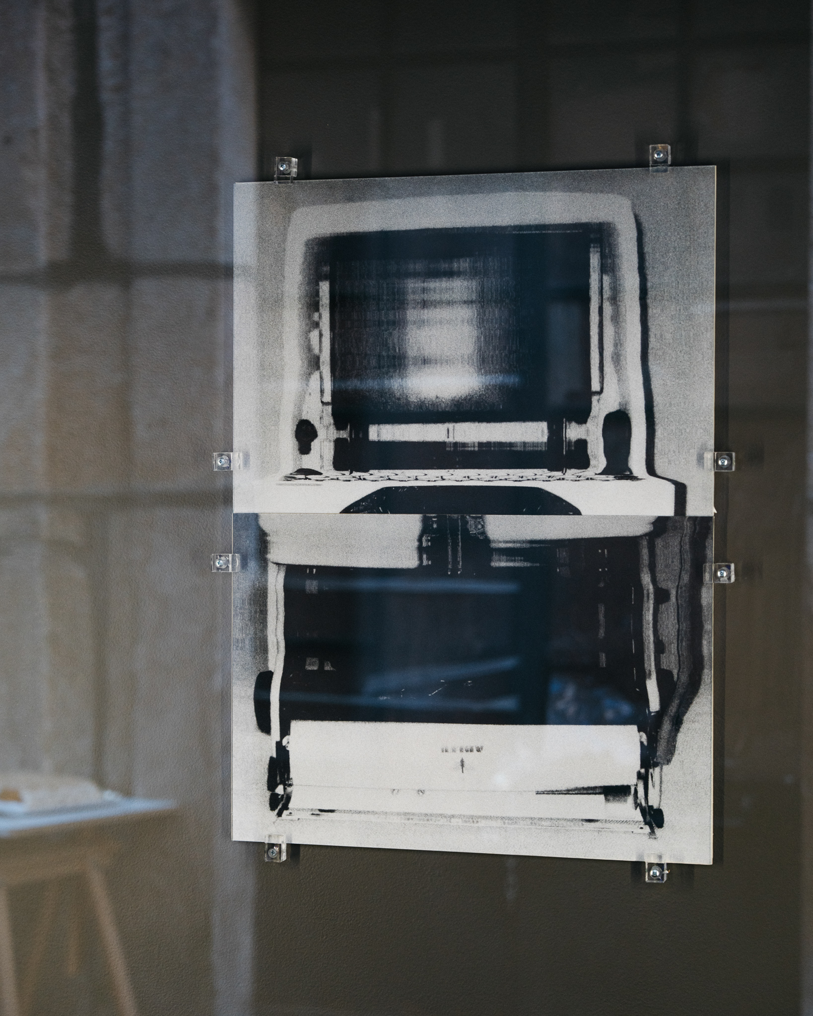 A exposição Slow slow slow motion é composta por duas peças. A primeira, exposta na montra da Galeria, é uma fotografia que remete para uma máquina de escrever, distorcida através de lentes manipuladas pelo artista. Esta imagem funciona como um indício das ferramentas e processos que estruturam a peça central, antecipando uma realidade mediada, fragmentada e deformada. Ao mesmo tempo, sugere uma reapropriação da palavra e dos seus mecanismos de produção, deslocada aqui para um uso não convencional. A peça central parte igualmente de uma imagem fotográfica previamente trabalhada, que constitui a base para o desenvolvimento de um sistema mais complexo de transformação contínua.